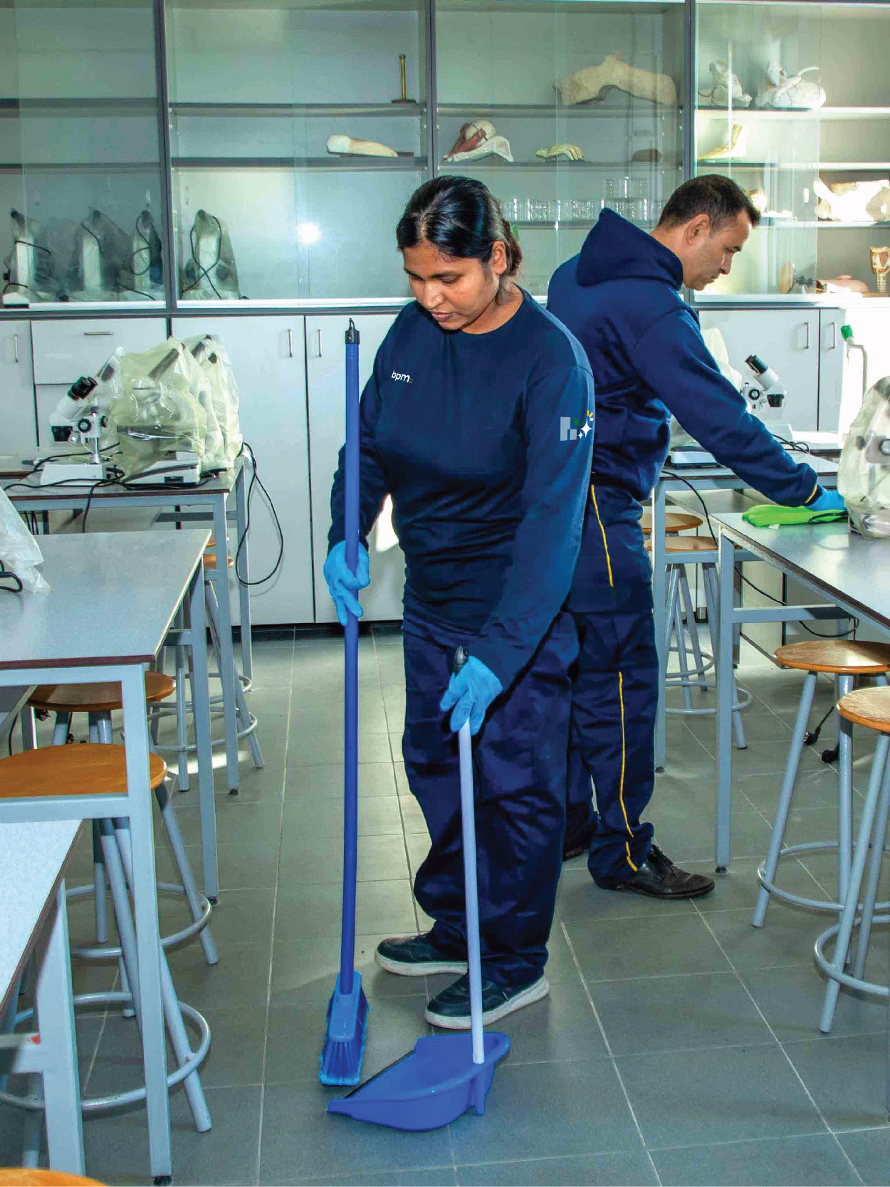 Whether full-time or part-time, we work side by side with corporations employing over 10,000 people, covering cleaning, pest control, security, and maintenance — with a touch of green through planting and watering.